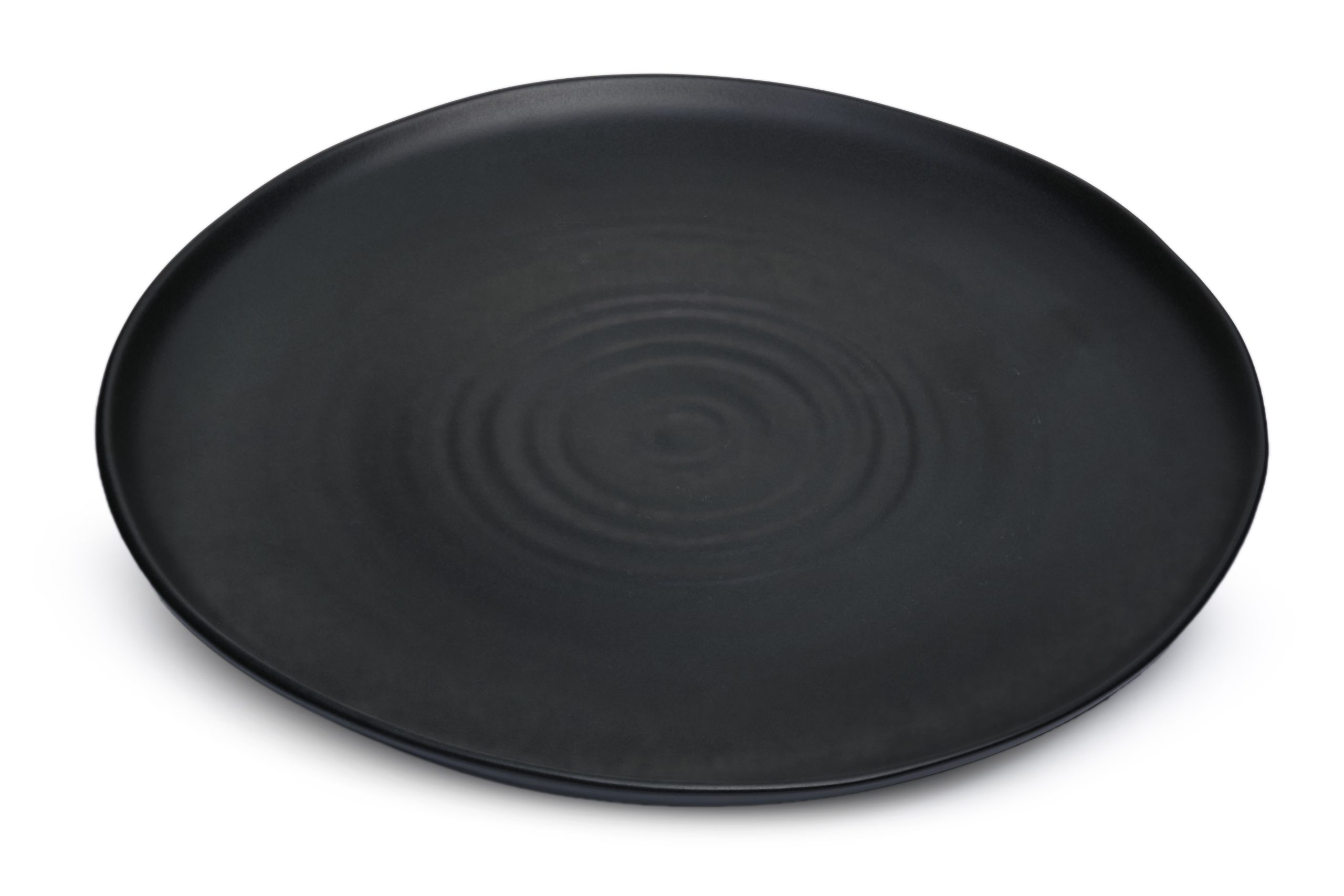 צלחת מנה ראשונה מקרמיקה בצבע שחור—בעיצוב מודרני ונקי.