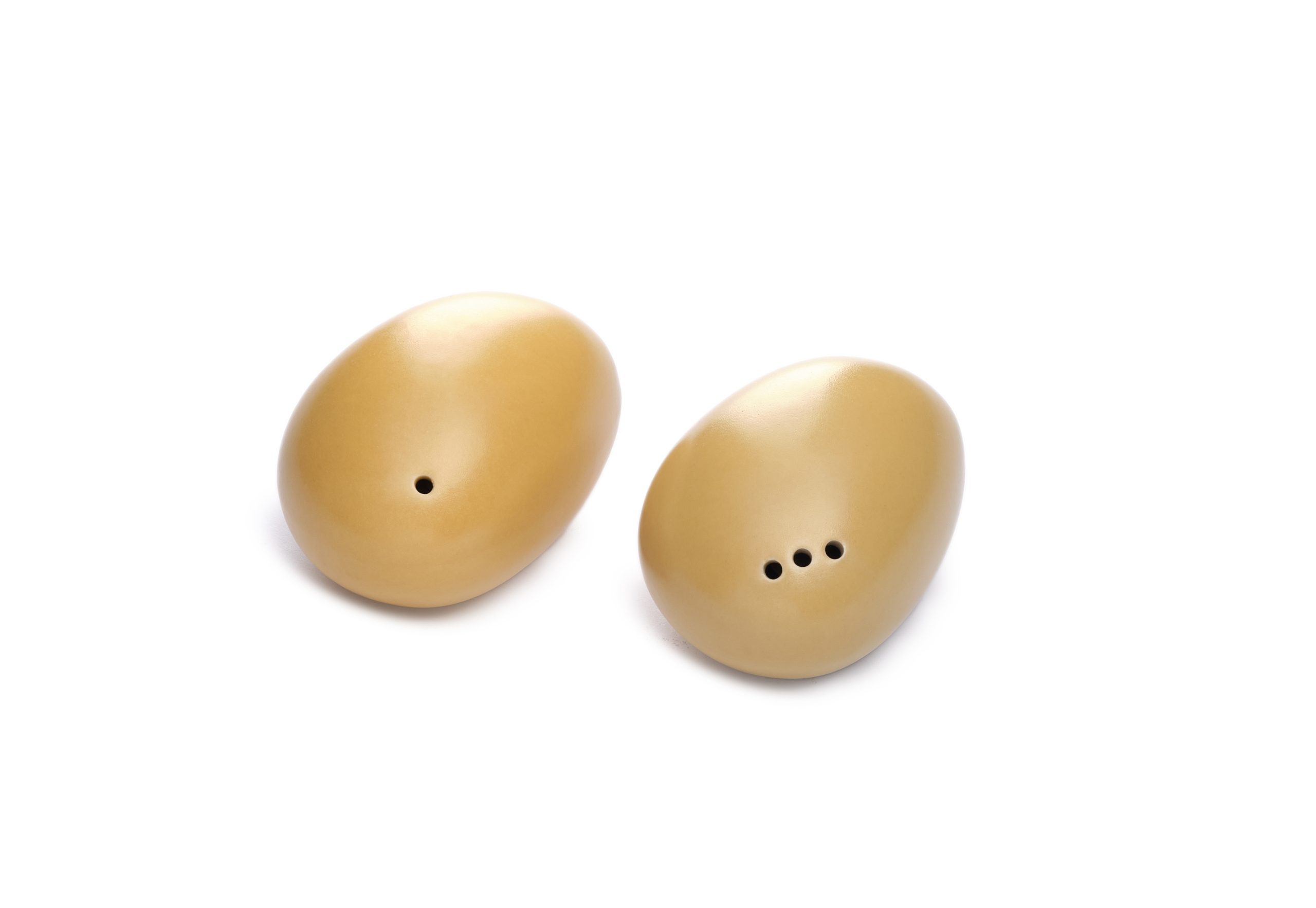 סט למלח ופלפל מקרמיקה בצבע חרדל—בעיצוב מודרני ונקי.