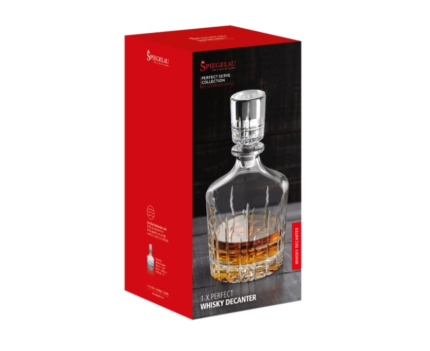 דיקנטר וויסקי יוקרתית מסדרת Perfect Serve של Spiegelau – עיצוב אלגנטי ונצחי עם חיתוך ייחודי, עשויה מזכוכית קריסטל איכותית ועמידה במדיח כלים. נפח של ‎750 מל וגובה ‎24.2 סמ – הבחירה המושלמת לשדרוג חוויית השתייה והאירוח שלכם. אידאלית לחובבי וויסקי ולמתנ