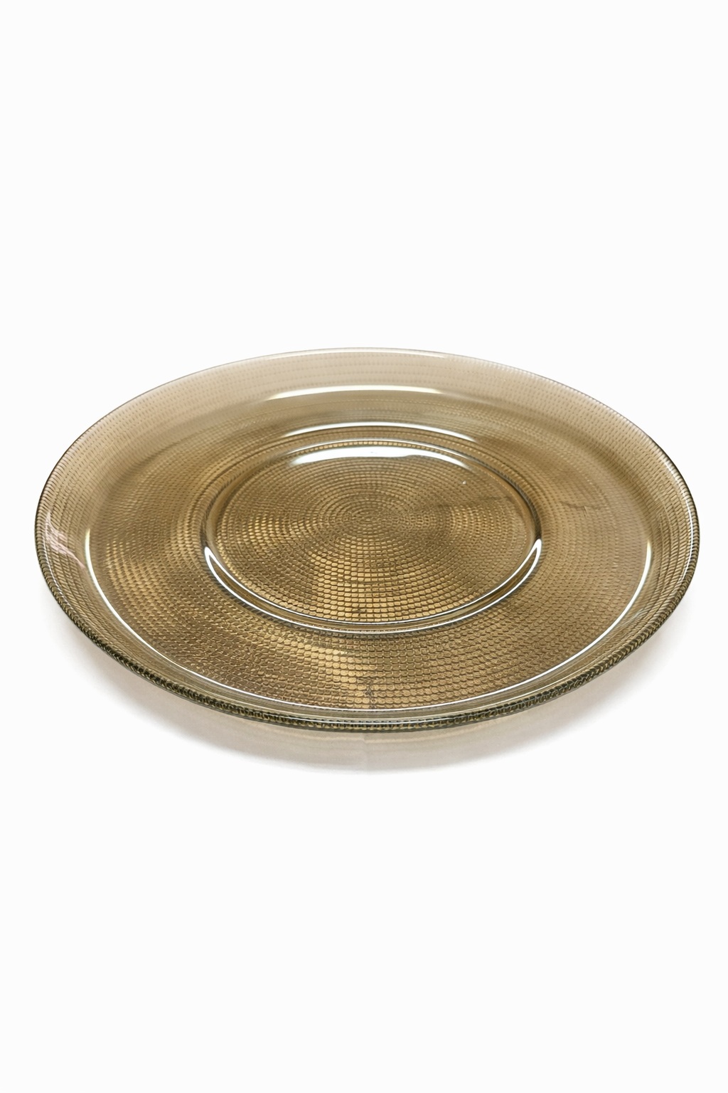 צלחת מזכוכית בעיצוב מעושן ואלגנטי, שמשתלבת בקלות בכל שולחן ומבליטה כל מנה.