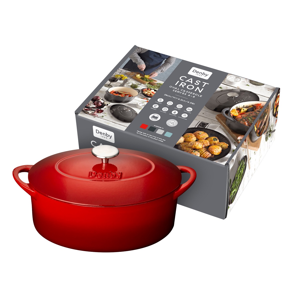 סיר אובלי קסרול יציקה אדום 28 ס"מ