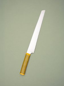 סכין לחם היא יצירה משוננת ומרשימה, שנועדה להתמודד בקלות עם לחמים בעלי קרום קשה וגם עם לחמים רכים ועדינים. הלהב הארוך והמשונן חוצה בקלילות את הקרום הקשה מבלי למעוך את החלק הפנימי הרך. בין אם אתם פורסים באגט, לחם מחמצת או לחם סנדוויץ’, סכין זו מבטיחה פ ין להכניס למדיח כלים. יש לשטוף באמצעות חומר ניקוי עדין וספוג שאינו שורט.