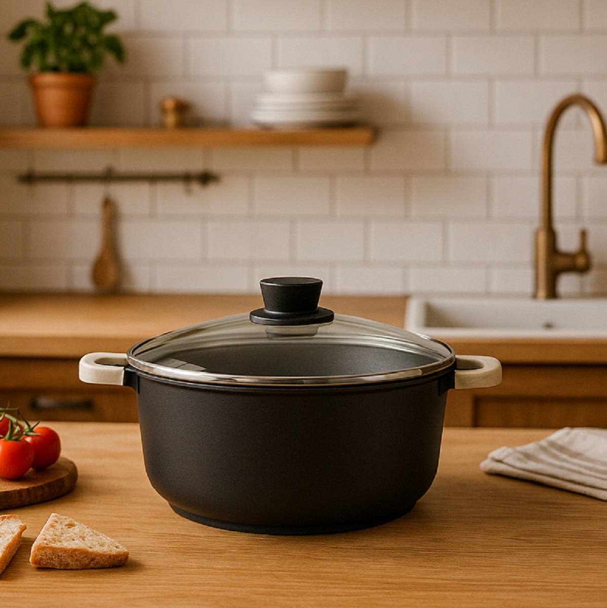כלי הבישול מיוצרים יציקת אלומיניום איכותי, חלוקת חום שווה ויעילה. כלי הבישול מיועדים לשימוש מופחת בשמן, שומן, מרגרינה או חמאה ומסייע לשמירה על הבריאות.