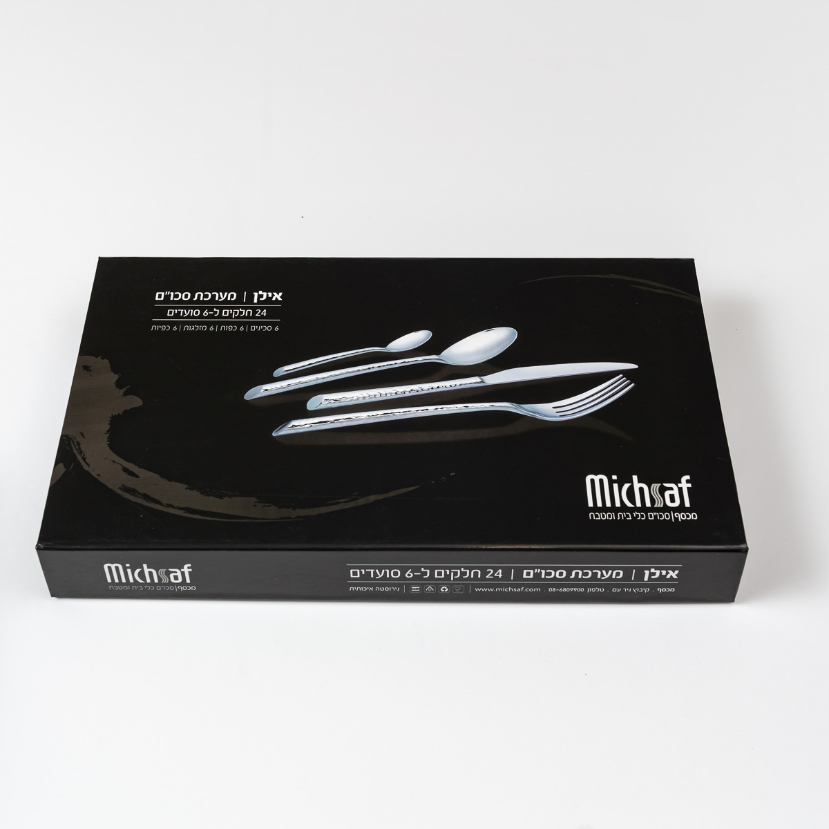 סט סכו"ם 24 חלקים דגם אילן באריזת מתנה ל – 6 סועדים כולל: סכין, מזלג, כף וכפית * 6 יחידות מכ"א.