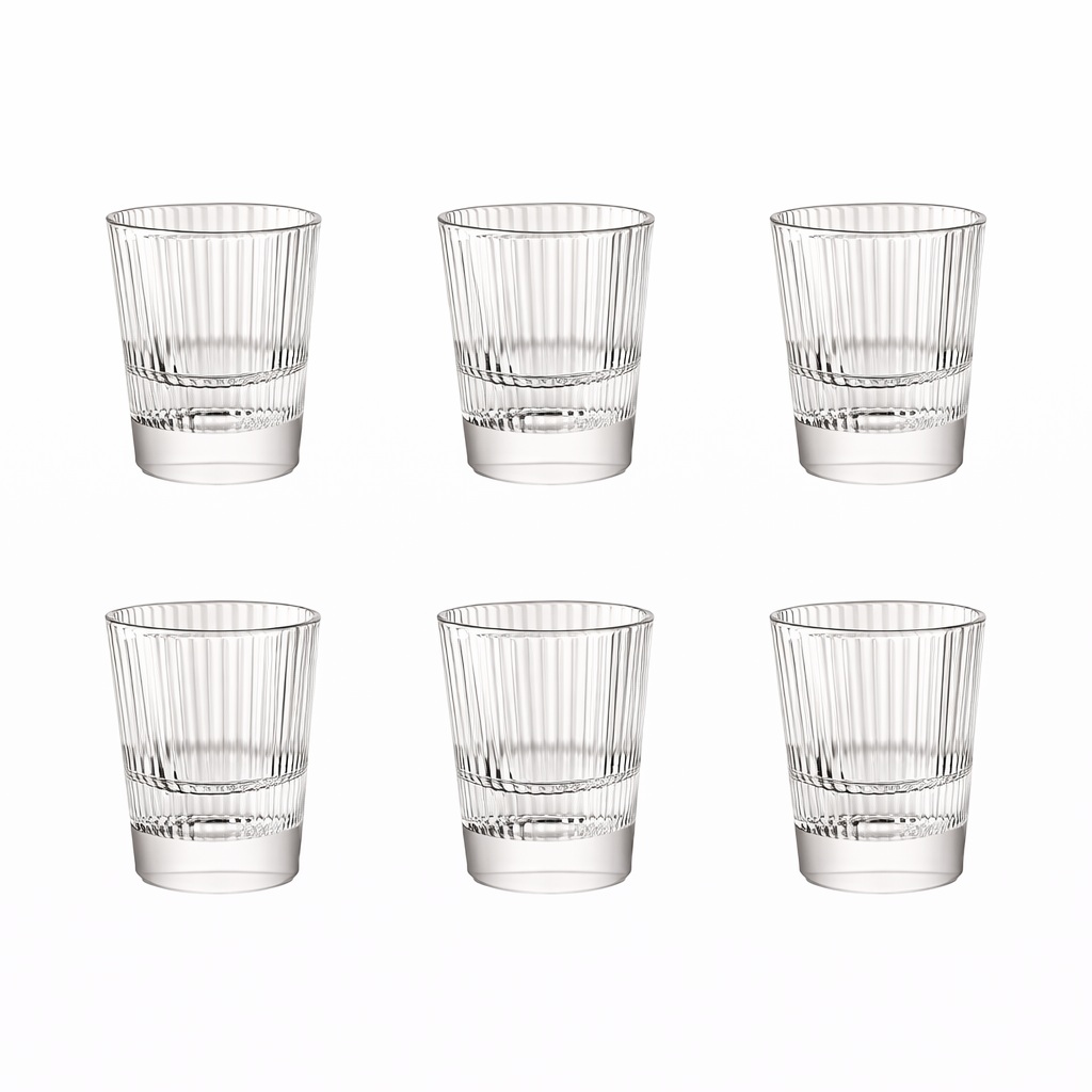 סט אלגנטי של שש כוסות זכוכית איכותיות, בעיצוב נקי וקלאסי שמתאים לכל שולחן. מושלמות להגשת משקאות אלכוהולים – הסט מתאים במיוחד כמתנה מעוצבת ומוקפדת, או לאירוח חגיגי כשמחפשים מראה יוקרתי ומרשים לשולחן.