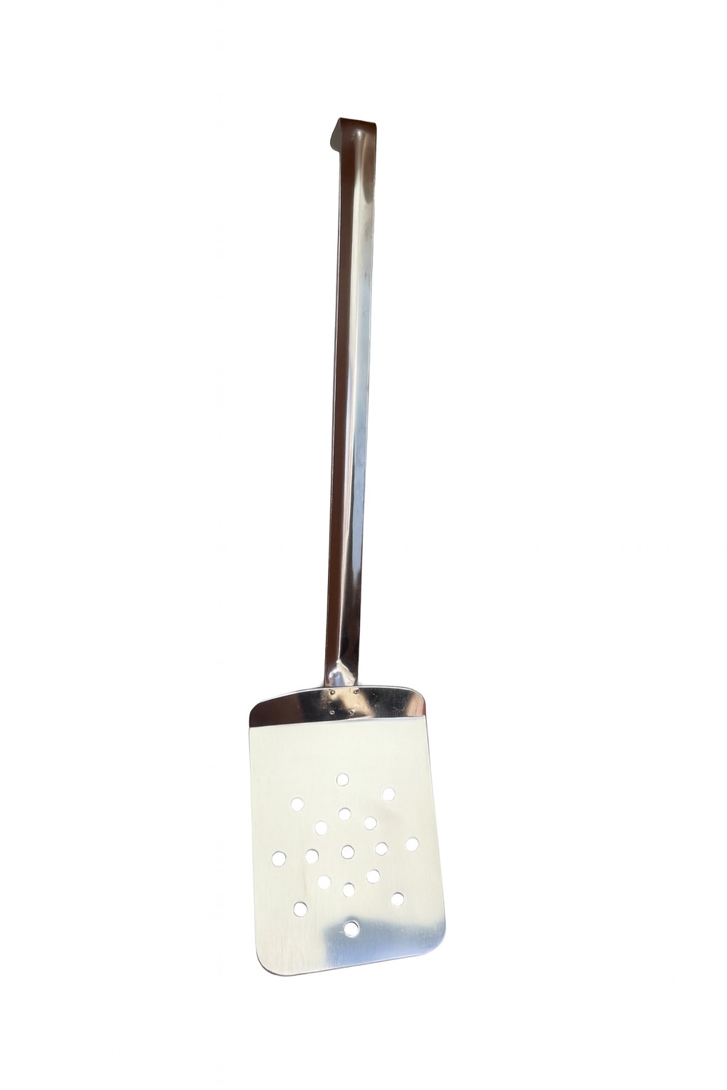 כף טיגון חריצים נירוסטה ידית 40 ס"מ