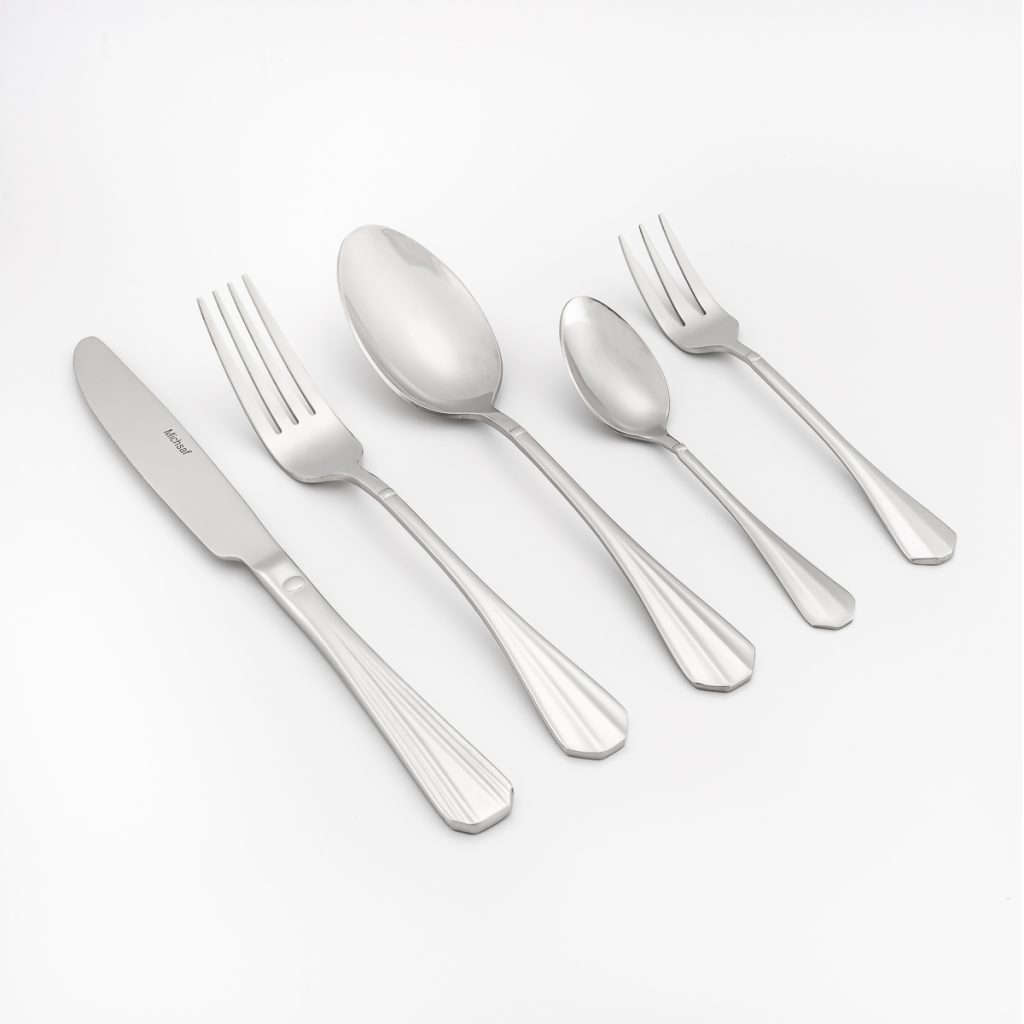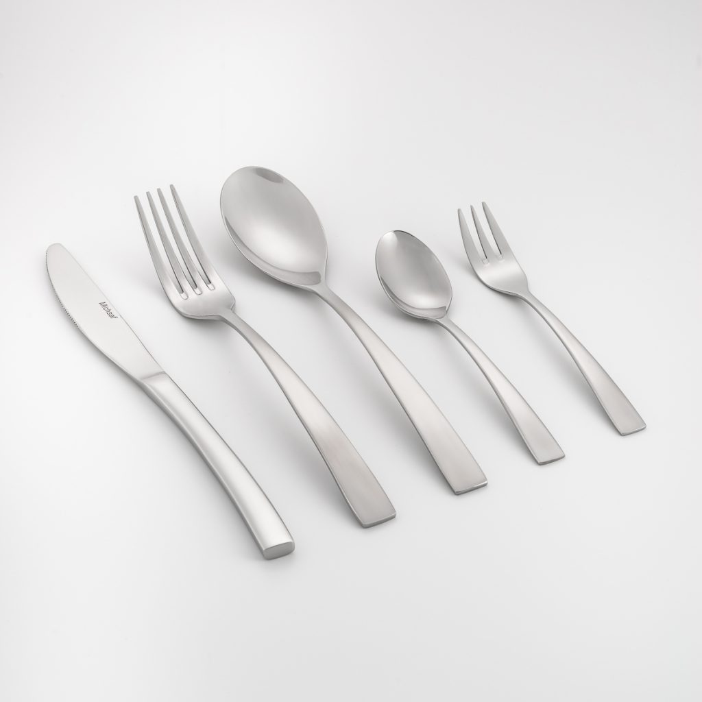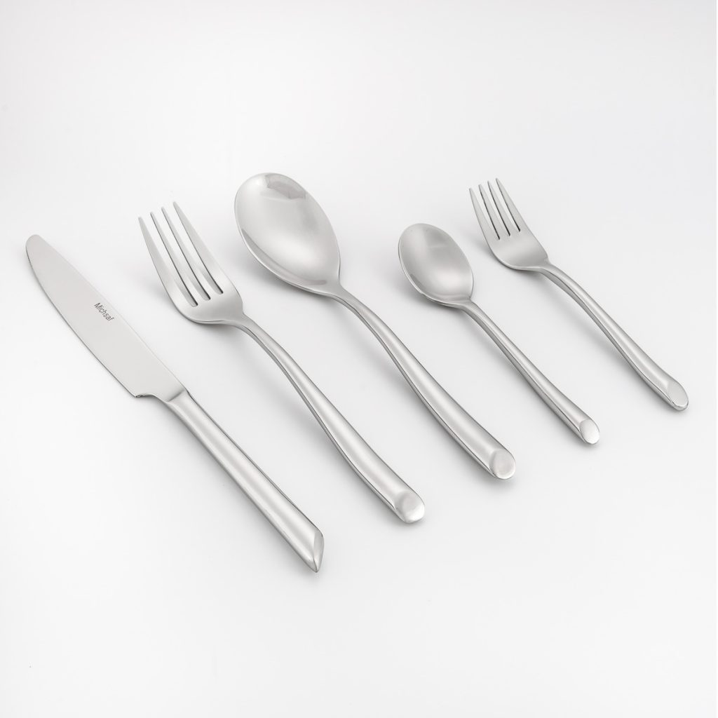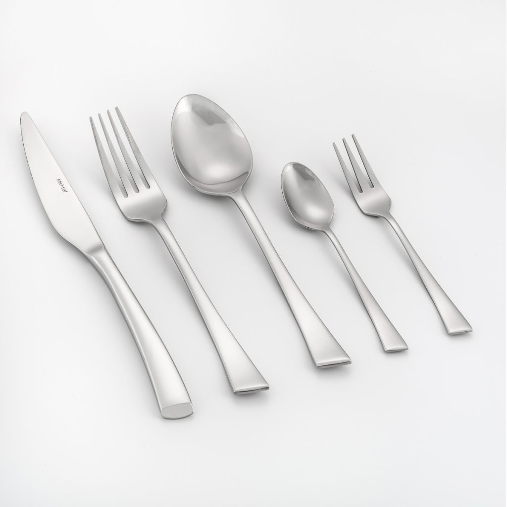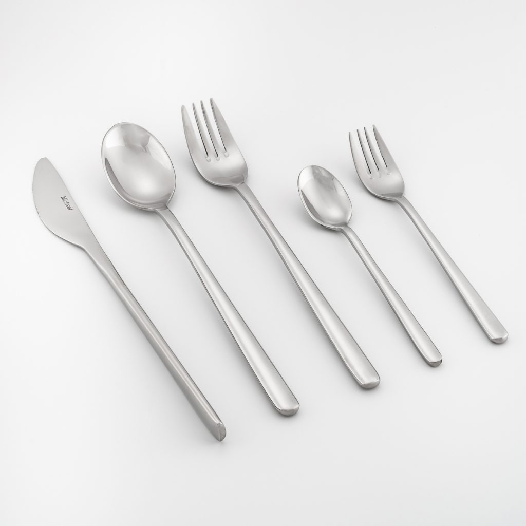 דגם מנירוסטה מט בעיצוב אלגנטי עם קווים ישרים ועיטור עדין בקצה הידית