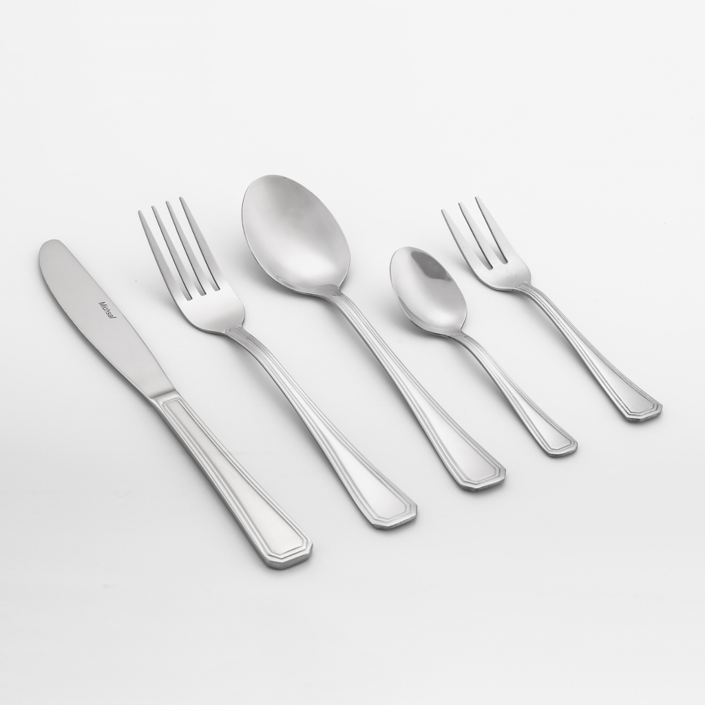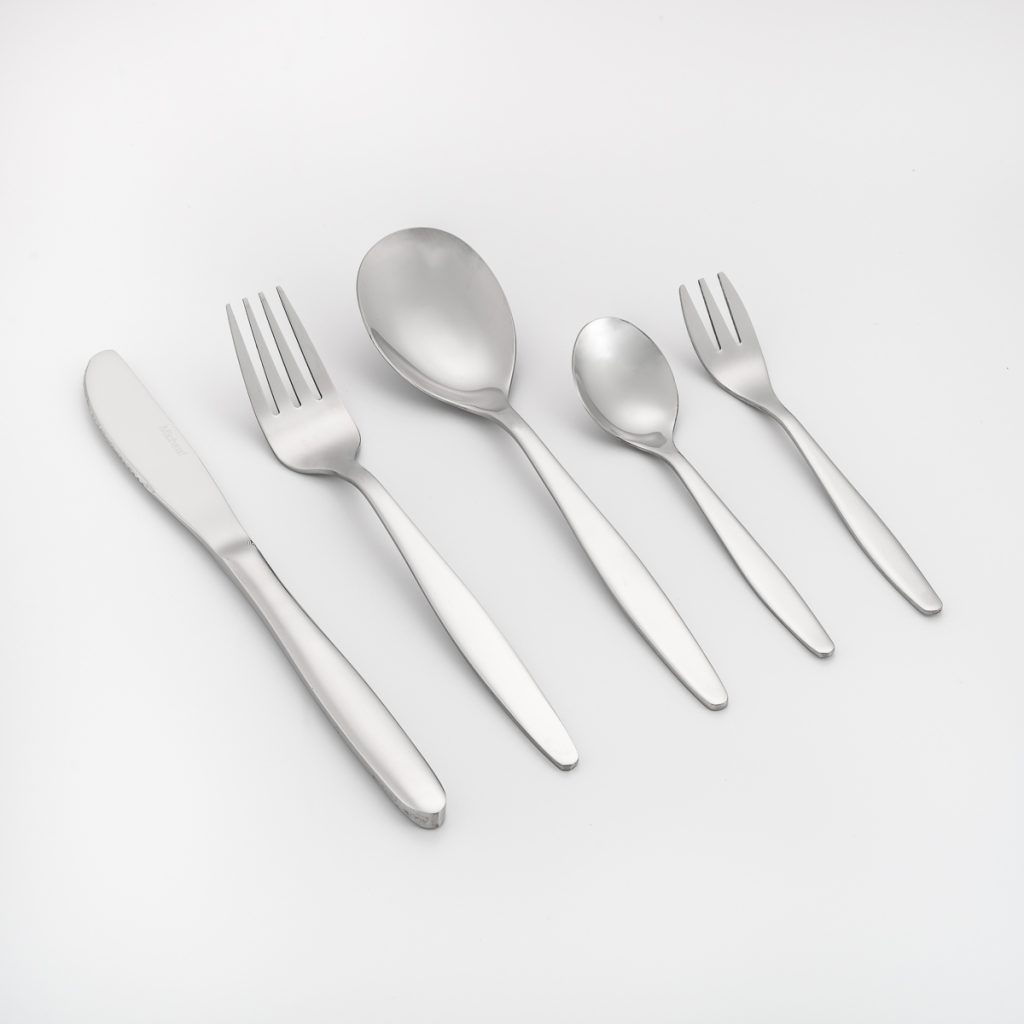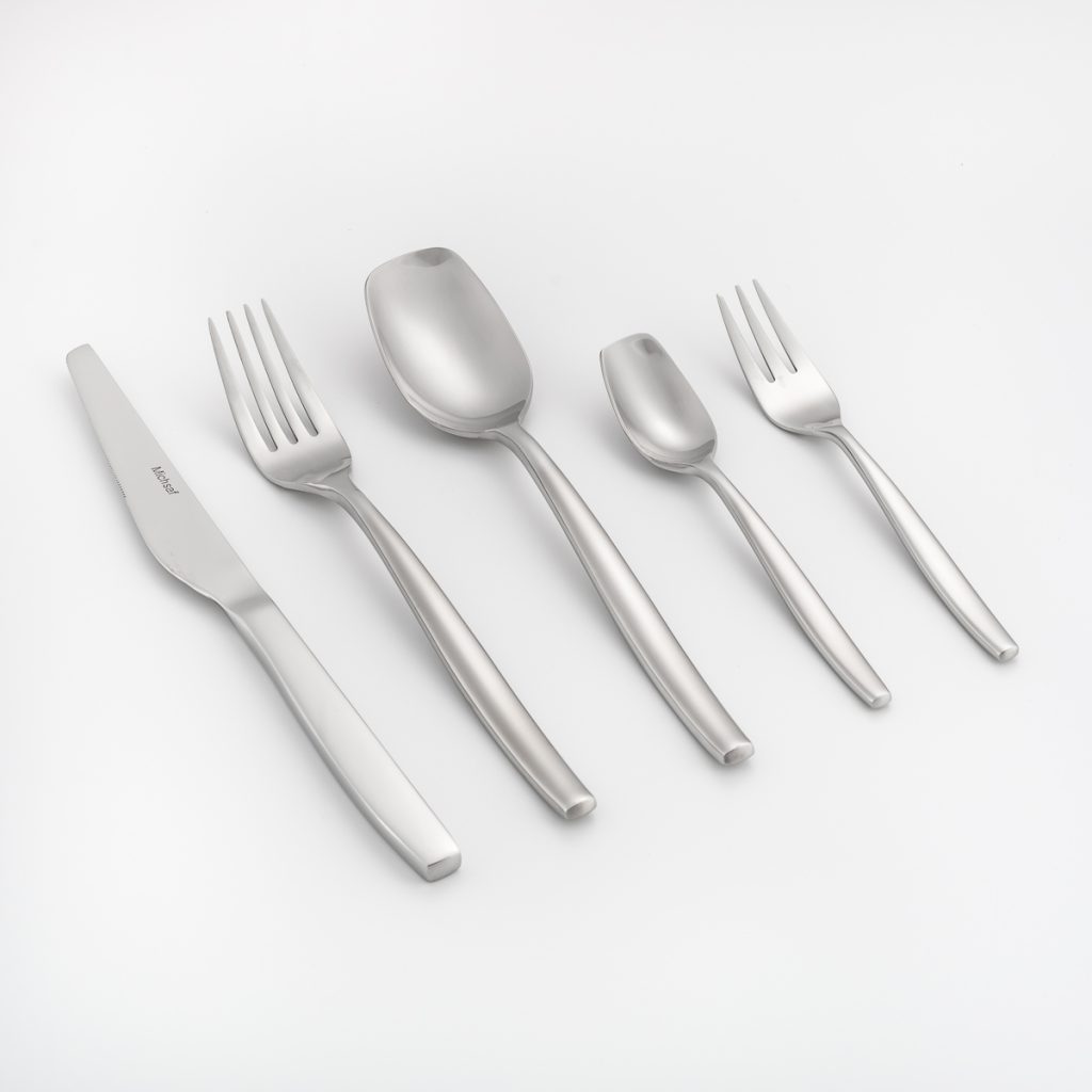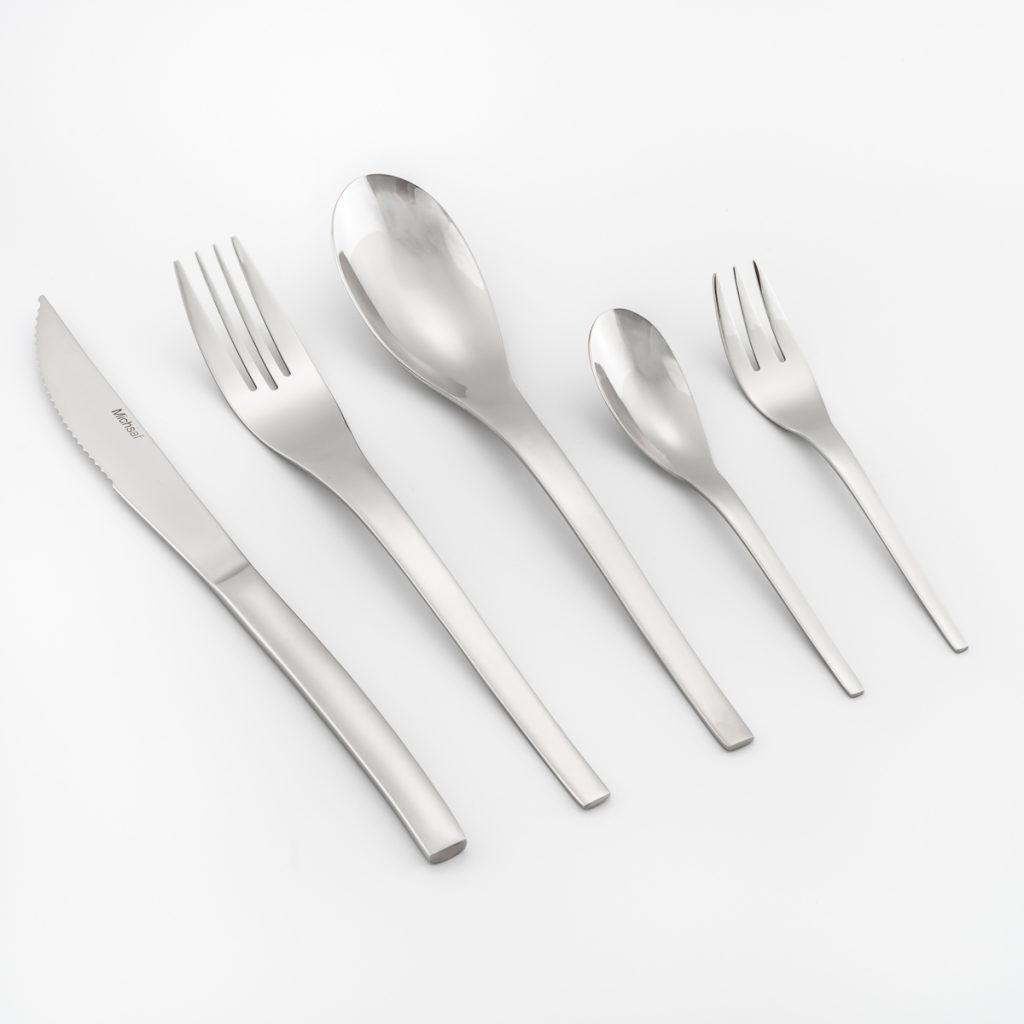 דגם מנירוסטה מט בעיצוב אלגנטי עם קווים ישרים ועיטור עדין בקצה הידית