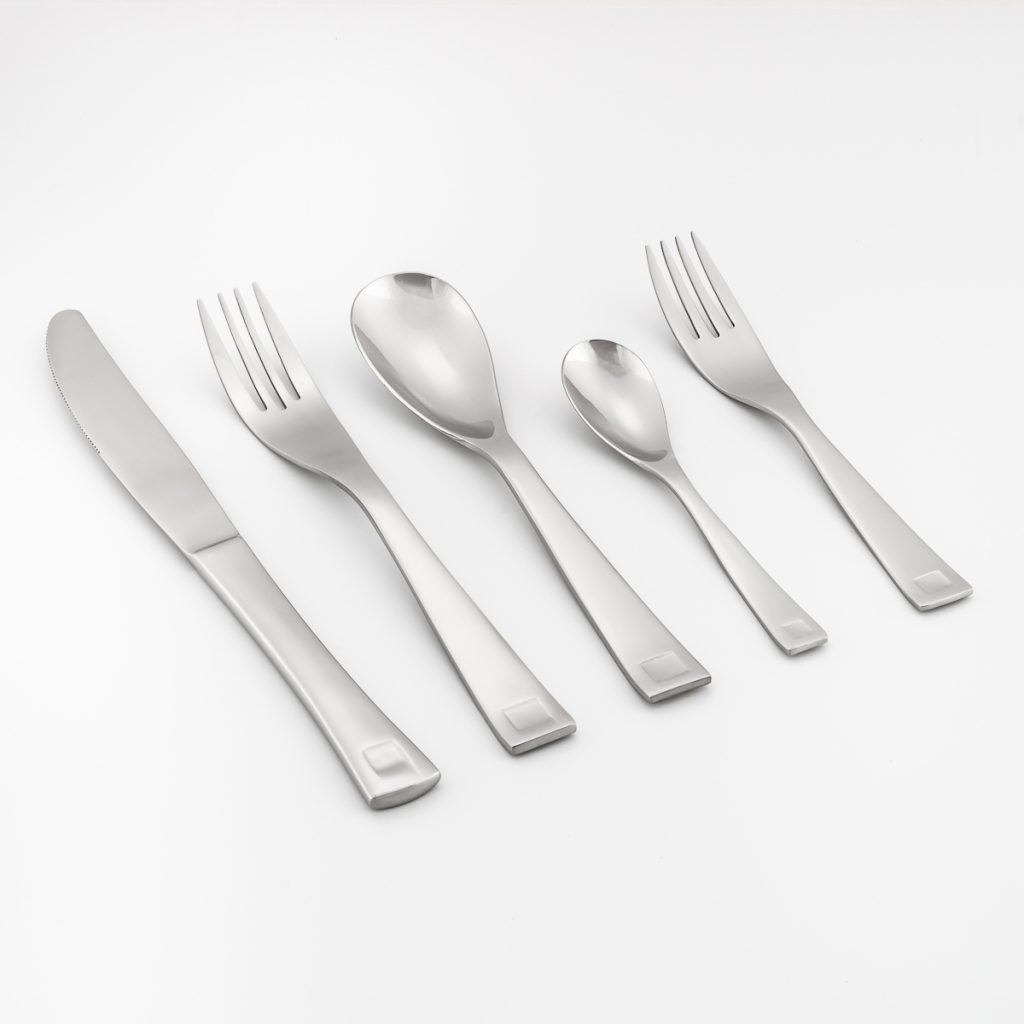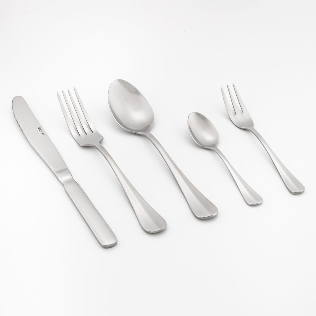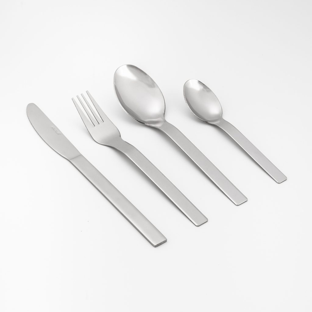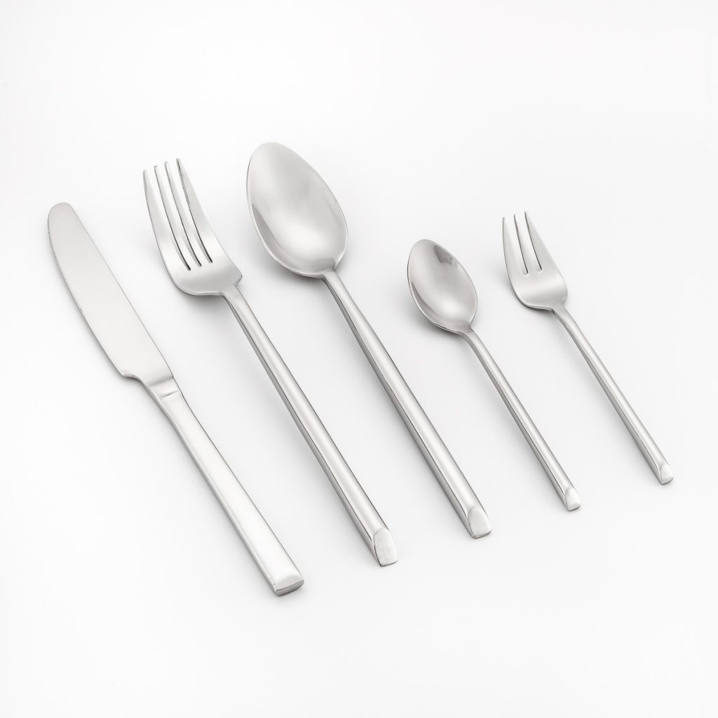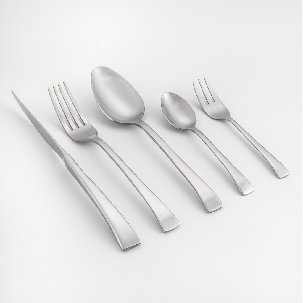 דגם מנירוסטה מט בעיצוב אלגנטי עם קווים ישרים ועיטור עדין בקצה הידית