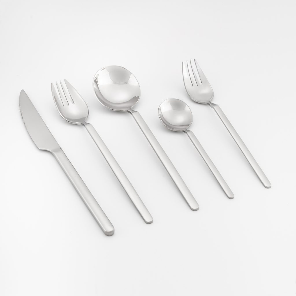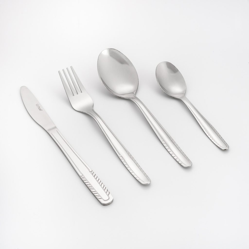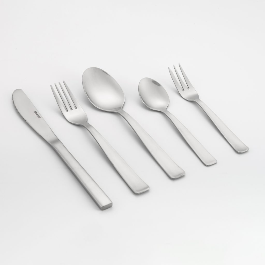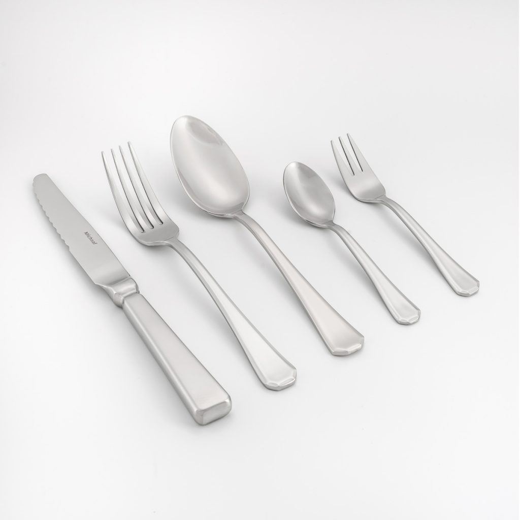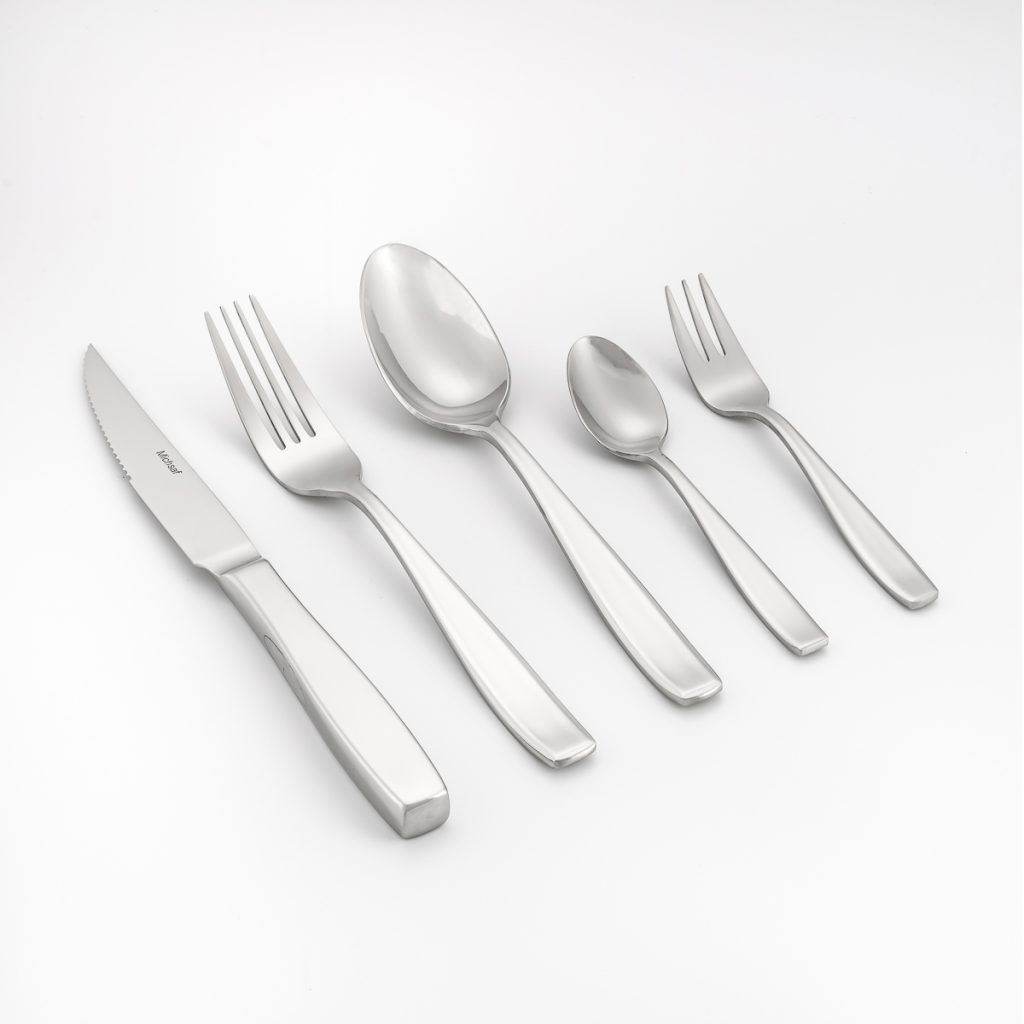 דגם מנירוסטה מט בעיצוב אלגנטי עם קווים ישרים ועיטור עדין בקצה הידית